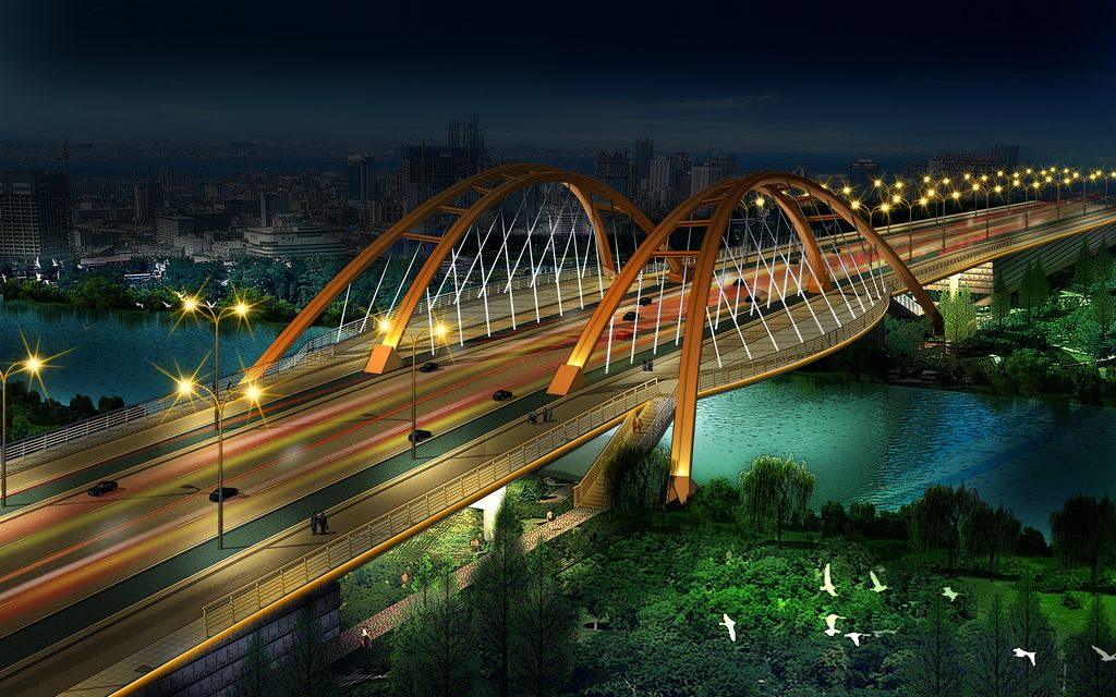 儀揚(yáng)河大橋位于儀揚(yáng)河南堤與南輔道連接線段,工程向北跨越儀揚(yáng)河。儀揚(yáng)河為人工開挖的運(yùn)河,往西南約3km與長江主航道相接,規(guī)劃為V級航道,通航凈空為45×5.0m。水位隨潮汐而上下波動,常水位為4.8m左右,相應(yīng)的水面寬度為60m。