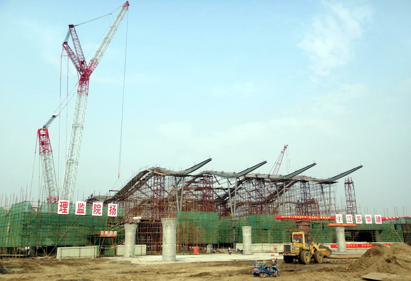 航站樓工程屋蓋采用環(huán)向、徑向的雙向曲面大空間鋼結(jié)構(gòu)體系,結(jié)構(gòu)復(fù)雜、工期緊、要求高。全體項(xiàng)目管理和工程監(jiān)理人員24小時(shí)現(xiàn)場(chǎng)值守,全力以赴,各項(xiàng)工作有序推進(jìn),成效顯著,得到了揚(yáng)泰兩市各級(jí)領(lǐng)導(dǎo)的高度贊揚(yáng)。