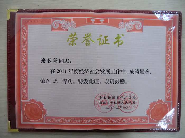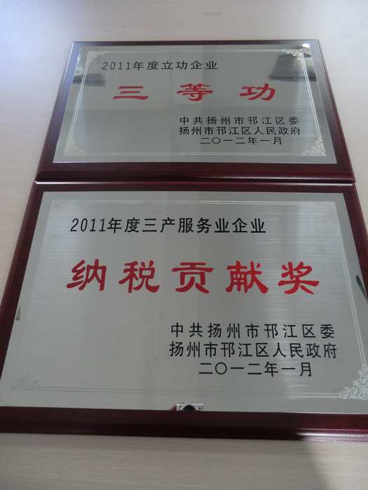 熱烈祝賀我院在揚(yáng)州市邗江區(qū)2011年度經(jīng)濟(jì)社會(huì)發(fā)展先進(jìn)集體和先進(jìn)個(gè)人評比中榮獲:三產(chǎn)服務(wù)業(yè)納稅貢獻(xiàn)獎(jiǎng)、服務(wù)業(yè)三等功、潘長海董事長個(gè)人三等功等榮譽(yù)